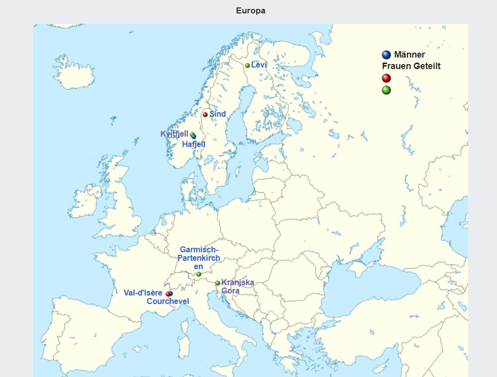 In den folgenden Karte sind alle 31 Gastgeber der Saison aufgeführt:
